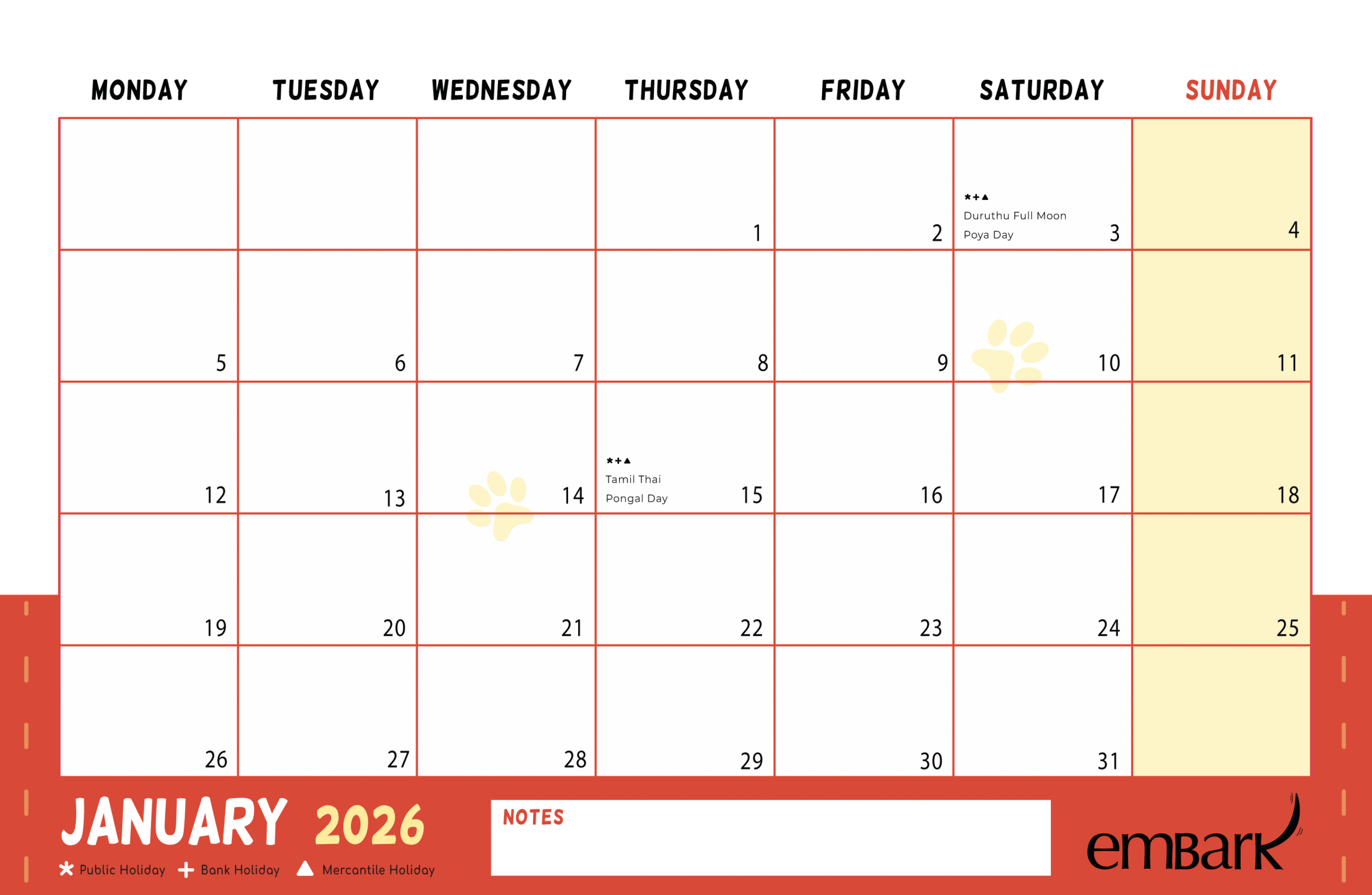 Stay organized and inspired all year long with adorable furry friends by your side! Comes with special Embark sticker page inside. Ideal for gifts too!!