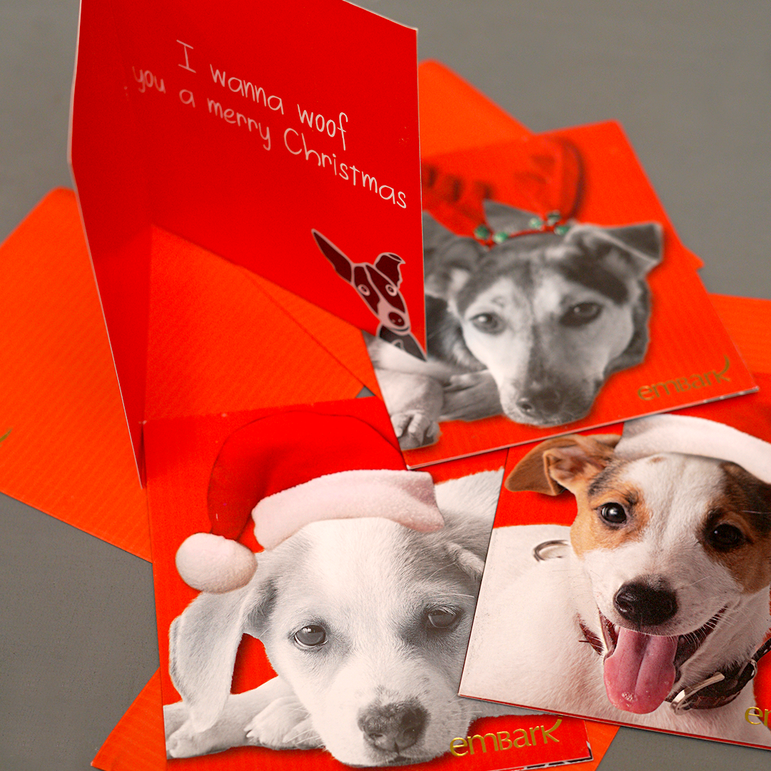 Send a playful greeting with our Embark Greeting Card – The X’mas greeting card pack features 5 cards and envelopes in a whimsical design perfect for any dog lover.