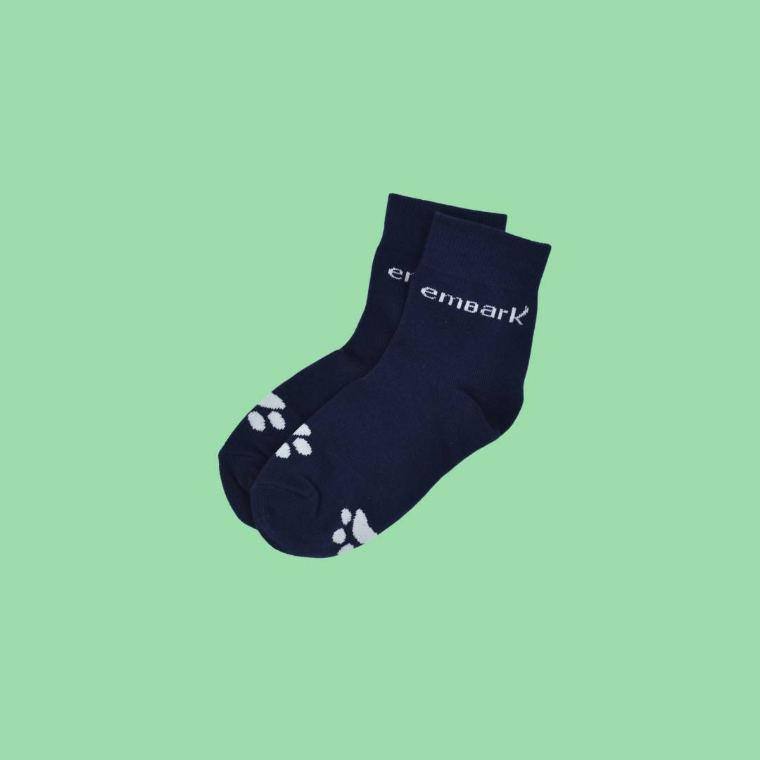 Introducing our Embark Half Socks with Paws in Navy! These half socks are designed for ultimate comfort, making them perfect for everyday wear.
