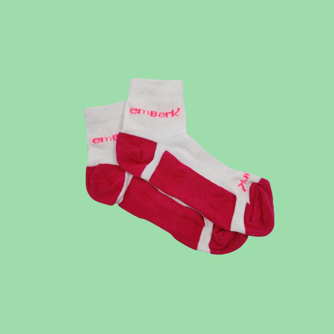 Prepare to step into comfort and style with our Embark Sports Socks in white and pink! Crafted from high-quality materials, these short socks are designed for ultimate comfort and performance.